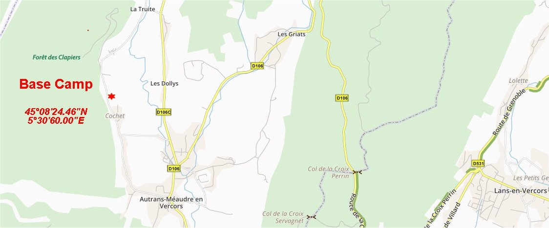 Comme en 2023, le camp de base sera installé à la Ferme des Prés Lauzés, près de Méaudre, à deux pas de la Spéléo-Tour José Mulot. Le lieu est rustique, mais vous trouverez eau courante, toilettes sèches, douches chaudes, électricité, espace vaisselle; et des des emplacements de convivialité aménagés et abrités. Aucun voisinage, sinon les animaux de la ferme ! Le coût du camping est de 5 euros par personne et par jour, à régler sur place. Important : Berger 2024 est un rassemblement. C'est à dire un lieu où on se rencontre. C'est un des aspects les plus enrichissants du camp. Sachez en profiter : s'il n'est pas obligatoire de venir vous installer ici pour votre séjour, cela est vivement recommandé. D'ailleurs votre présence est obligatoire la veille de votre descente pour le brefing du soir, et il faudra bien rapporter vos sacs poubelles extraits du gouffre !